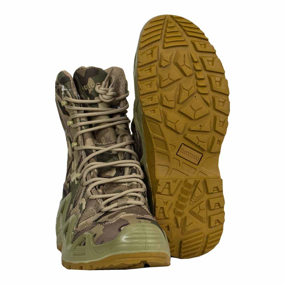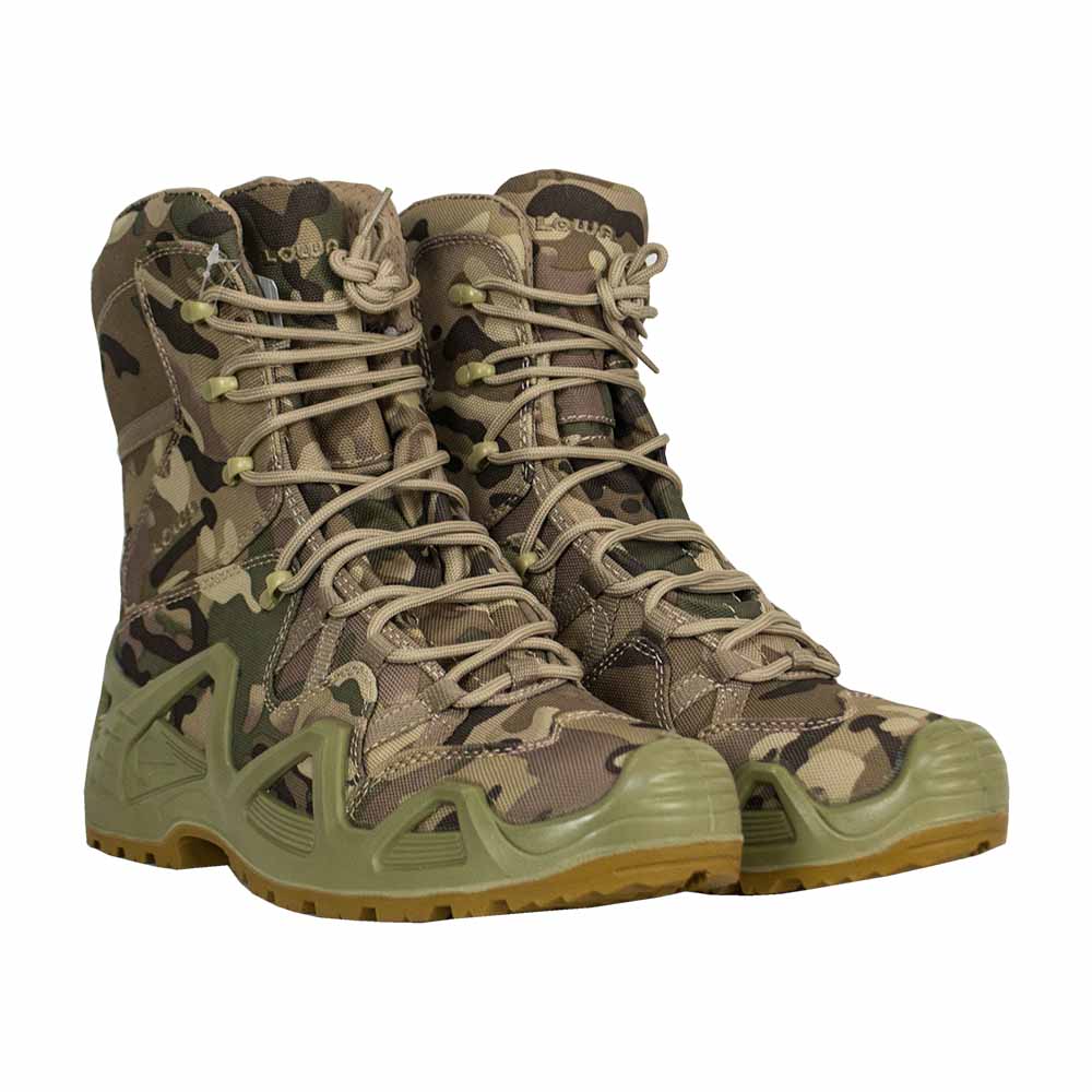 Тактические кроссовки Lowa с высокой голенью в расцветке мультикам - идеальный выбор для любителей активного отдыха и спорта. Выполнены из прочных износостойких материалов для обеспечения долговечности. Стильный дизайн в стиле милитари. Специальная подошва с глубоким протектором обеспечивает максимальное сцепление с разными поверхностями. Удобная шнуровка для идеальной подгонки по ноге.