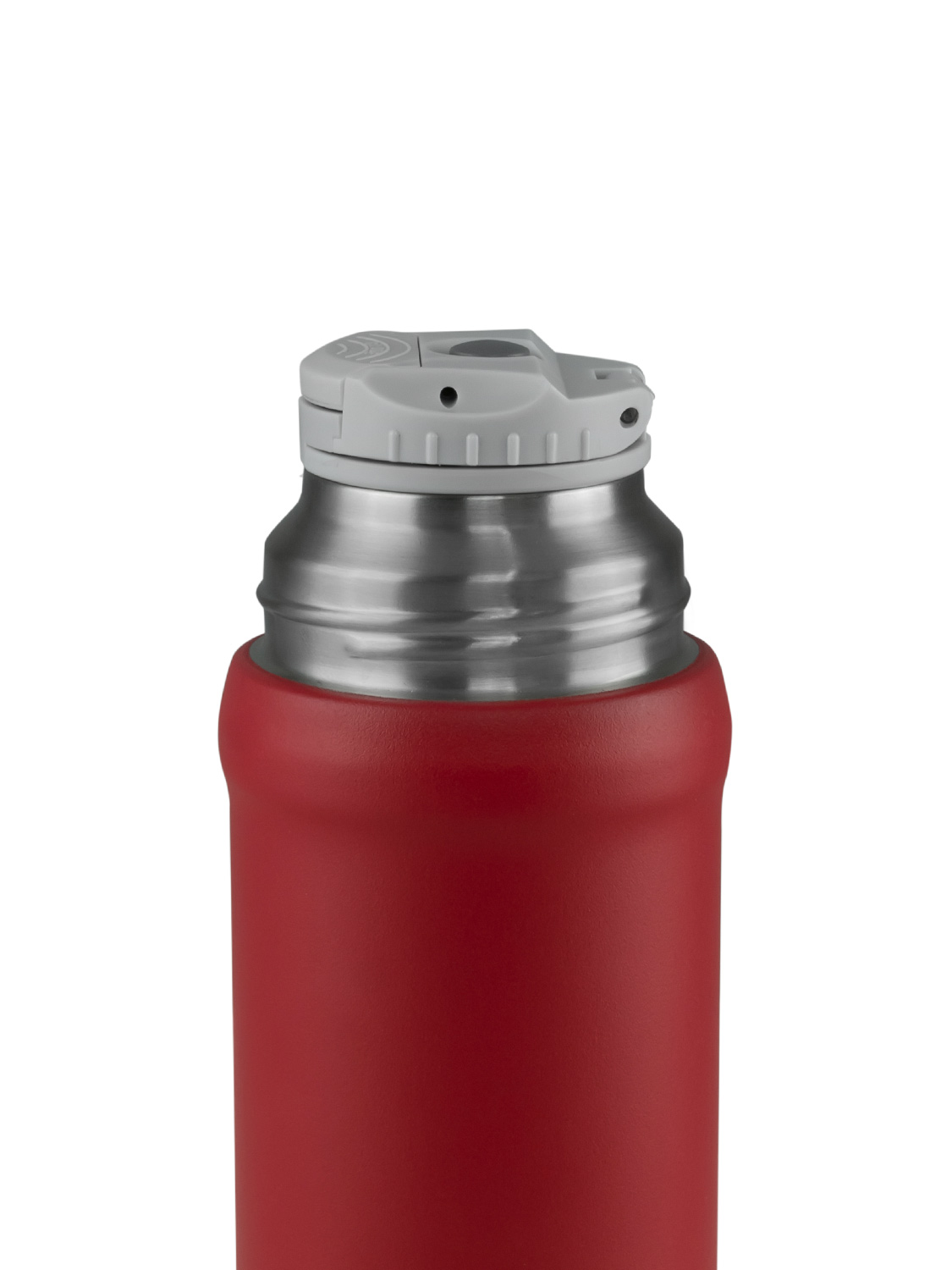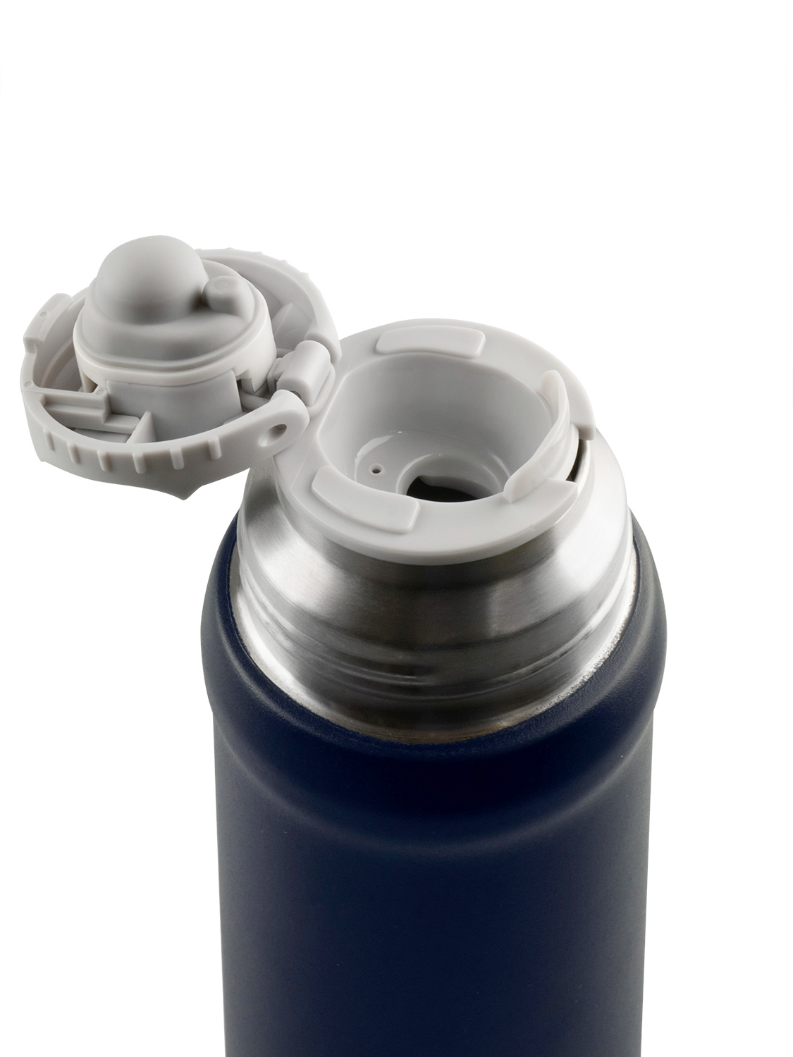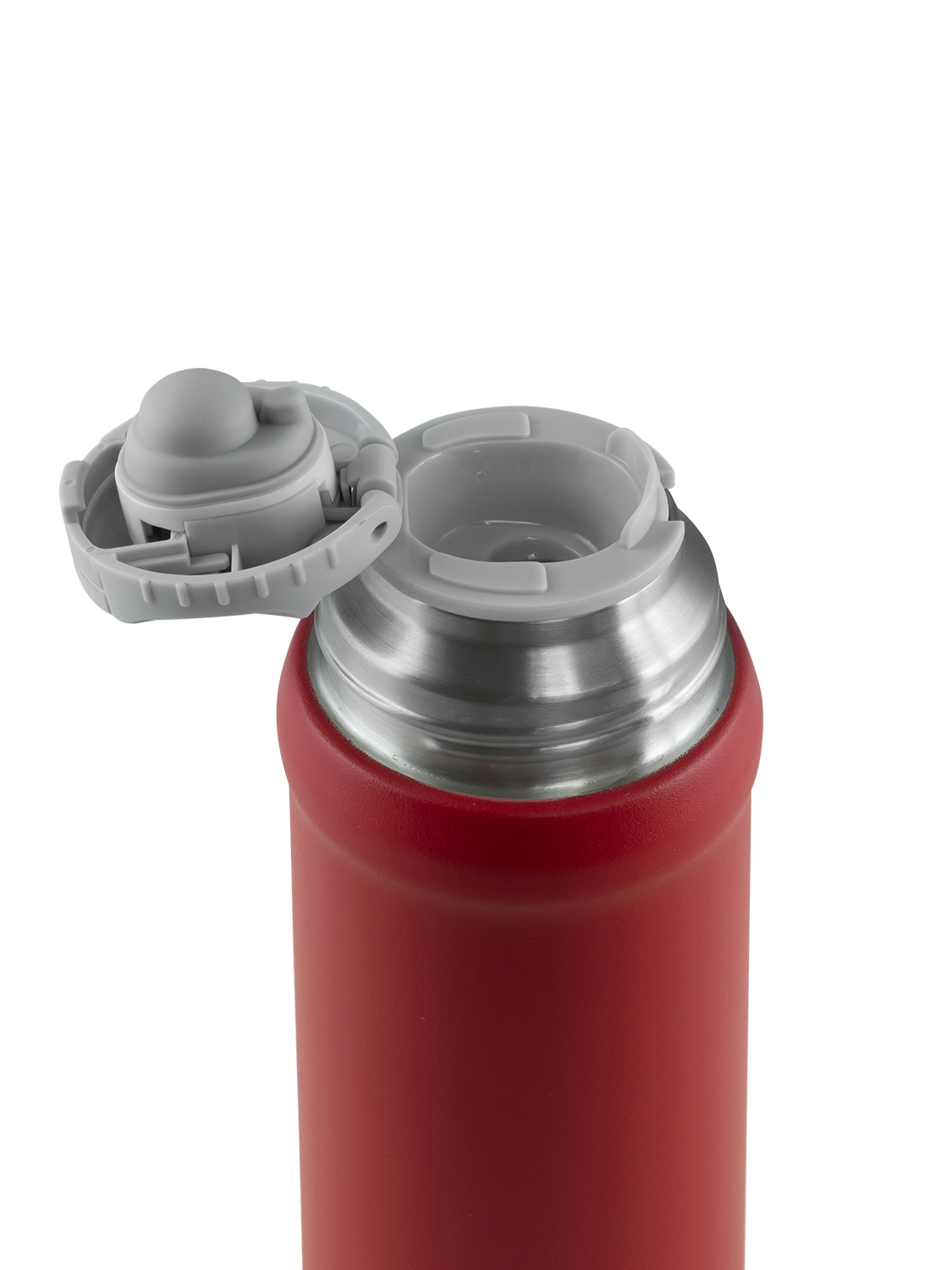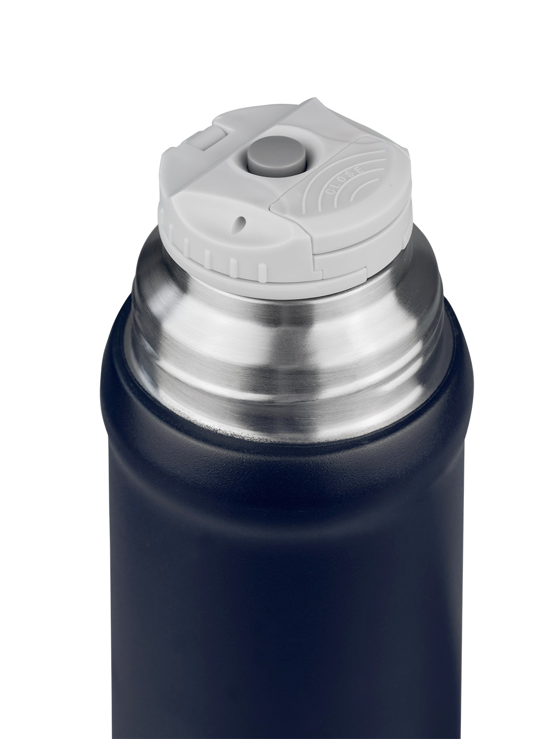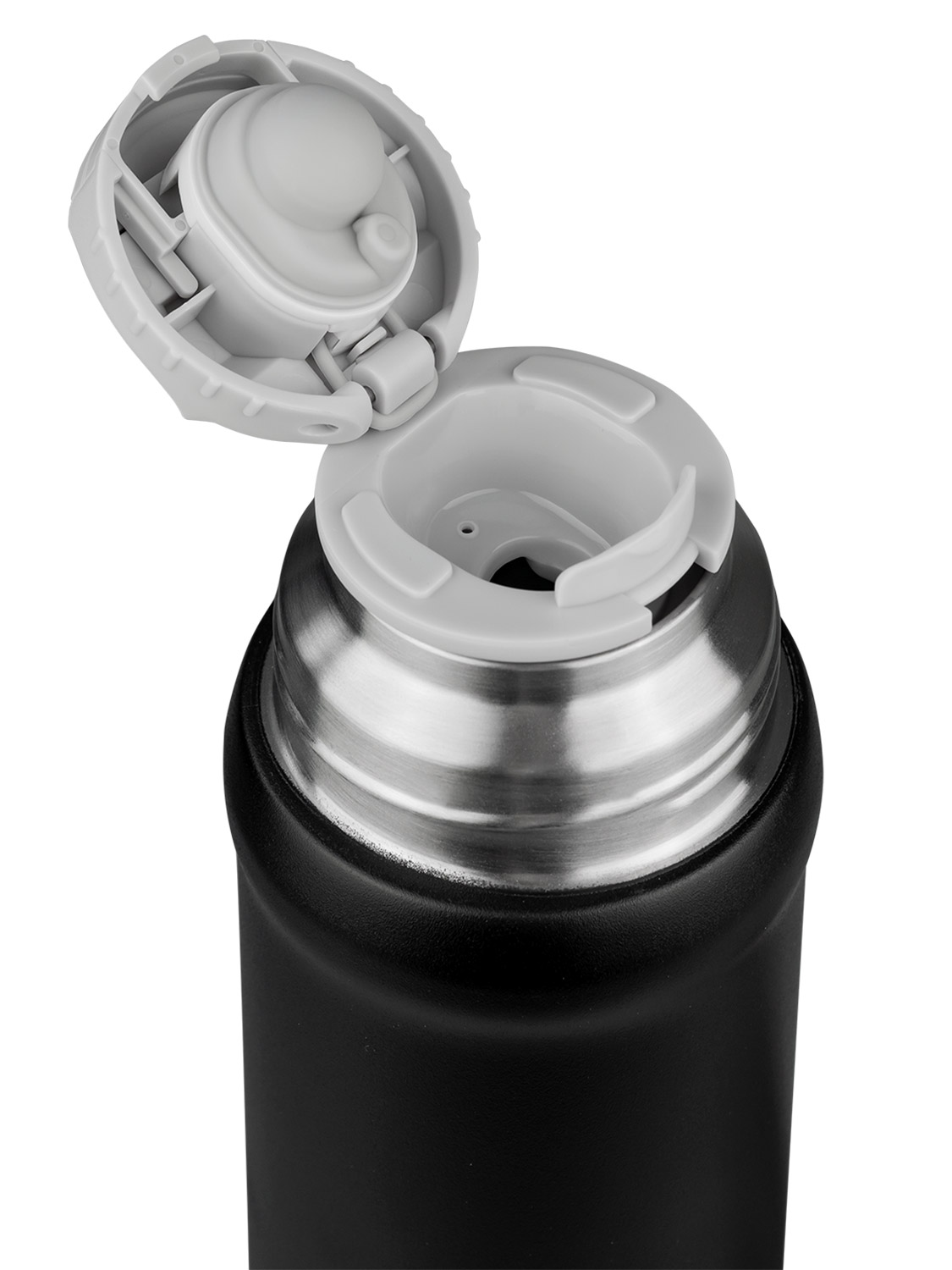 Открывайте термос одним движением на 180°. Для горячих напитков предусмотрена полностью стальная крышка-чашка с двойными стенками, не обжигающая руки. Чтобы освежиться, используйте встроенную питьевую систему и пейте без использования чашки. Будьте осторожны: чтобы не обжечься, перед тем как пить прямо из термоса, убедитесь, что напиток внутри комфортной для питья температуры.