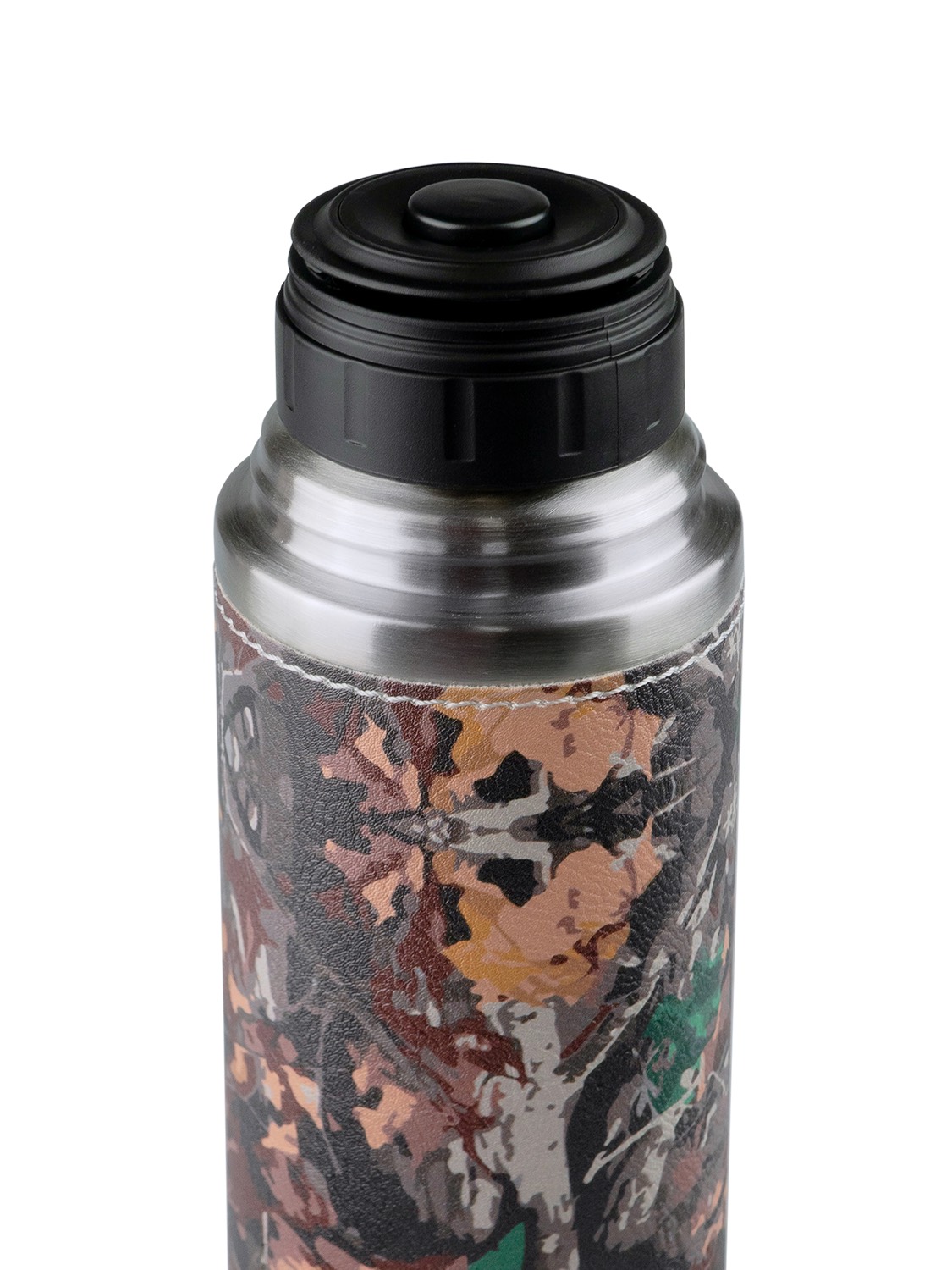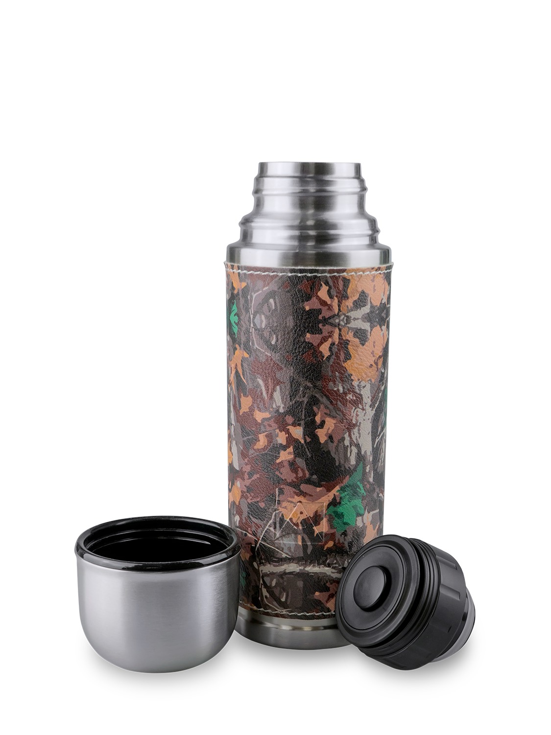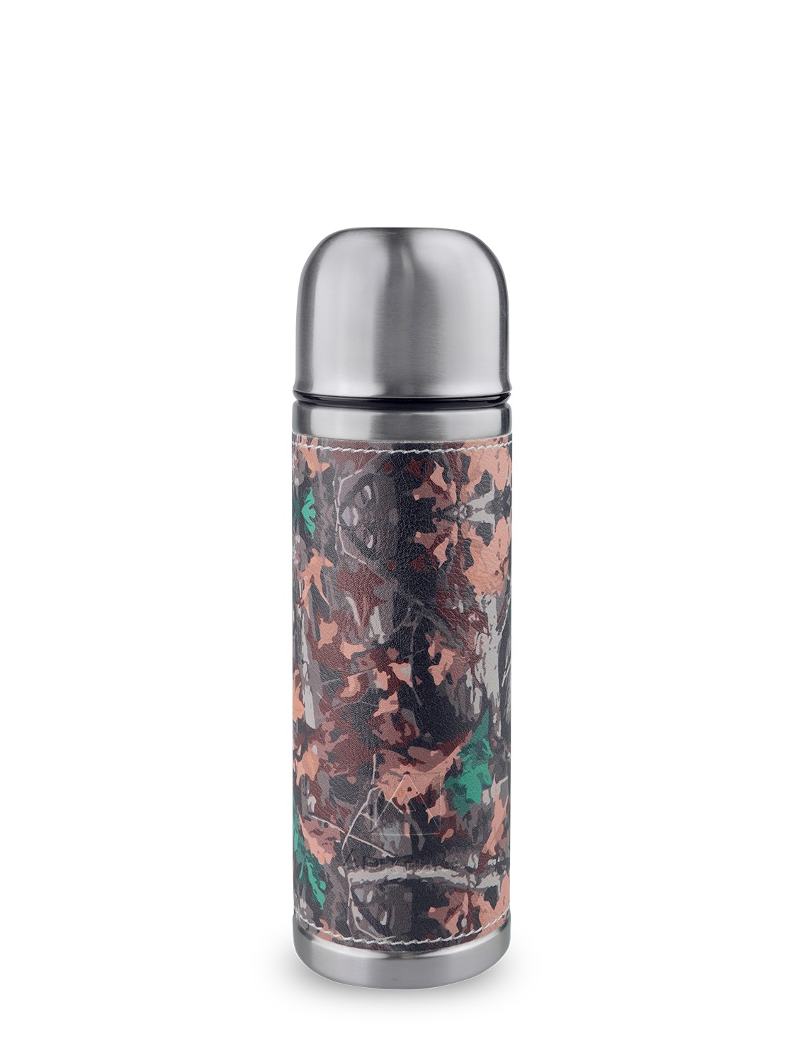 Стильный термос, который будет уместен как в походном рюкзаке, так и в дамской сумочке. Приятное на ощупь покрытие оплетки, имитирующее рисунок кожи канадского бизона, защищает термос от отпечатков и служит дополнительным термослоем. Оплетка легко снимается, если термос нужно промыть и просушить.